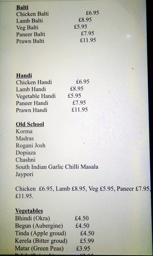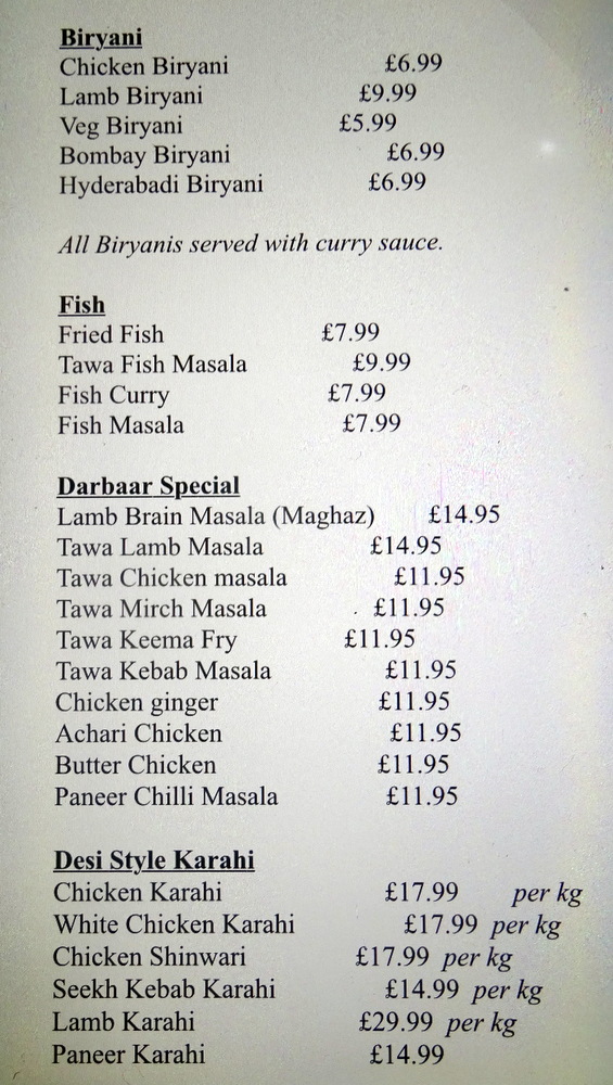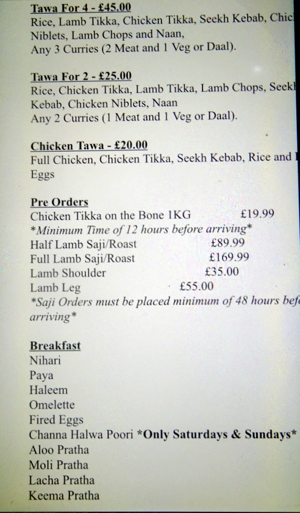 Archie had told me that a new Menu would be available soon. At this time the new Menu is on Ahmed’s phone, however, it now appears on Curry-Heute (see below) as a preview! This features traditional Punjabi Fayre served at breakfast time on a Saturday and Sunday. Oh to have this on one’s doorstep.