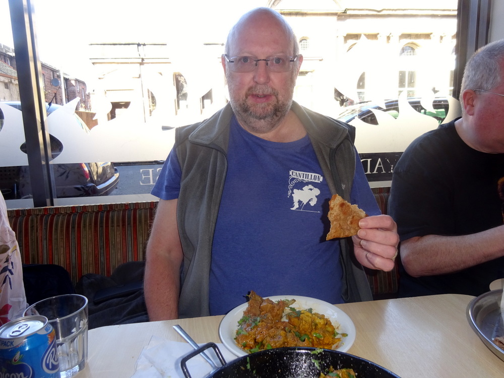 The sliced Green Chillies and Fresh Coriander were well mixed in by the time we reached the endgame. It was all about counting down the final pieces. When Mags called a halt there was even more Lamb to deal with, John to the rescue. We did ourselves proud, only smears of Masala were left, no Lamb, no Bread. Naveed asked if wished anything else, I had to go for the – same again! Dessert was declined, we were here for Curry, not Pudding.