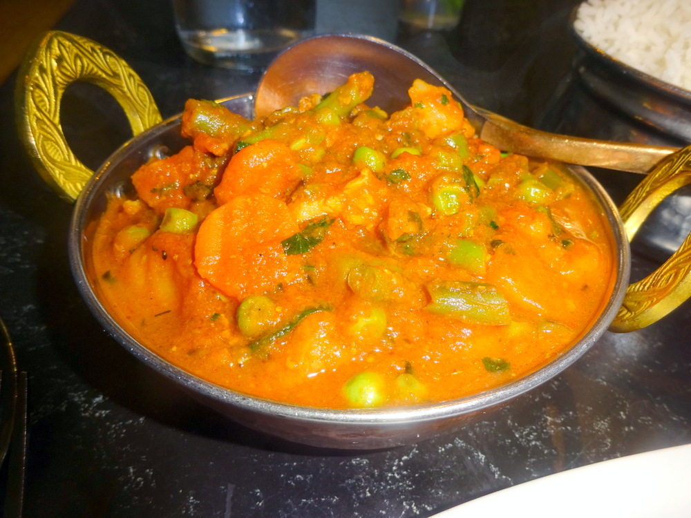 The Flavours were so familiar, there was an excellent blend of Spices here, but no sign of Herbs. The Vegetables added so much diversity: Green Bean, Peas and most importantly – Carrots – were present. Carrots work so well in a Masala. In my own cooking I have tried blending Carrots into the Masala but still cannot recreate the Flavours achieved in Restaurants.
