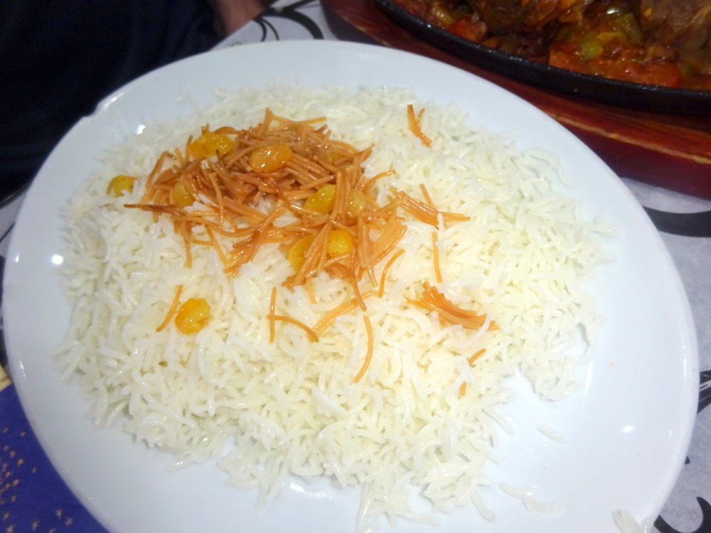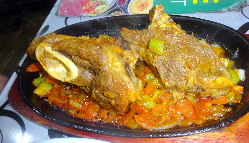 Two large pieces of slow-cooked Lamb sat on a bed of sizzling Tomato and Onion. Add to this the share of the Salad, the huge portion of Rice and the accompanying Beans in Sauce. This is a feast, and don’t forget the Bread!