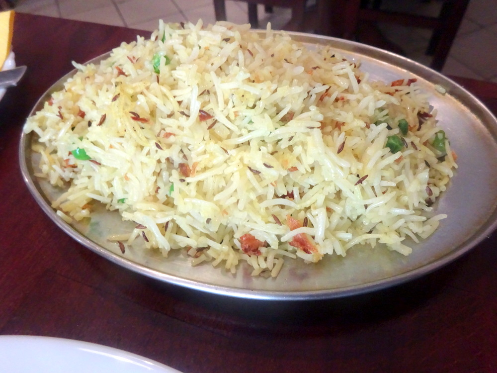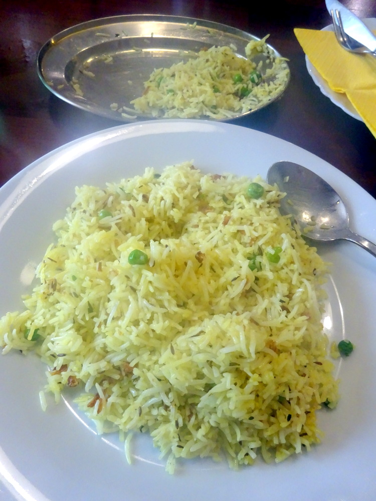The Rice was identical to that served yesterday at Amritsar Mail. Cumin Seeds accompanied the Peas, tasty Rice.