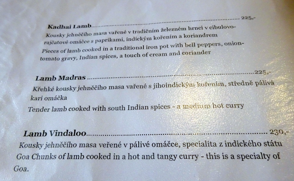 The downhill route from the accommodation to Sada Punjab (U Vrosvickeho nadrazi 99/24 Praha 10-Vrosvice,, Czechia) took me through a park. What was quite a pleasant stroll was interrupted by a mass of sirens all wailing in unison. Nobody appeared to be bothered by this. The noise abated just as I entered Sada Punjab. About three tables were occupied, the diners all taking advantage of the Buffet (119Kc). The place seemed eerily quiet.