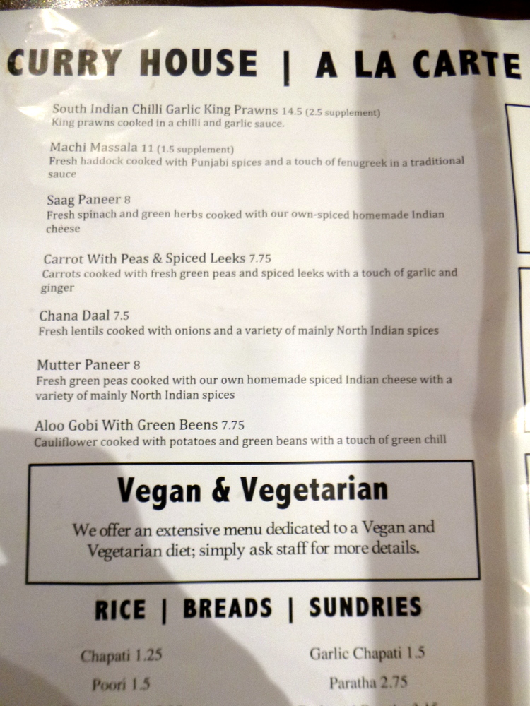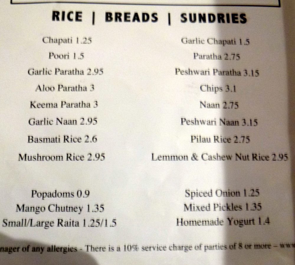 The Paratha was of the – Wholemeal – variety and served quartered in a basket. Last time I specifically asked for the Paratha to be served whole and it was. I suppose it is up to the diner to insist on Bread being served whole.