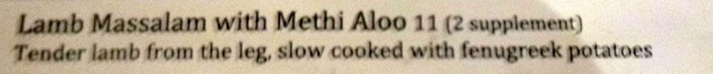 Lamb Massalam with Methi Aloo