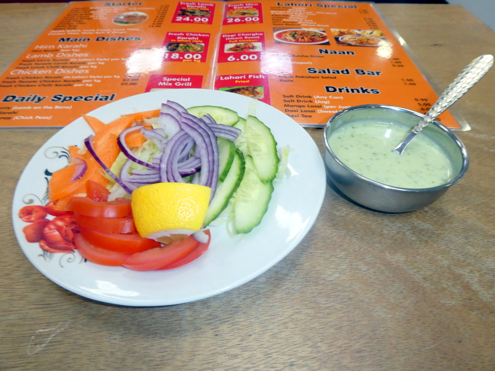 £10.50 I eventually realised the Menu was different from last time, a kilo of Lamb Karahi then was £22.00, still good value presently. I assumed I had to pay for the Salad and Raita to be charged this, else I had been given a larger portion than the norm.