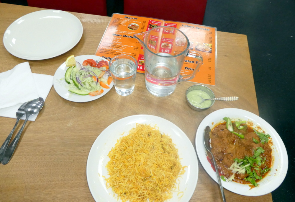 I have only been to Lahori Badsha at lunchtimes previously, impressive as the Curry has been, I have concluded that better could be available if one were to arrive later. Today I was later, I asked for Lamb Karahi. Zak showed me the Menu, it was £24.00 a kilo for the full Desi Karahi experience. I couldn’t eat a kilo to myself at one sitting, believe me. And I was not going back to the Travelodge until after the IQ gig and some Manchester Ales. Taking leftovers away was not an option. I settled for the now customary Lamb Curry (Lamb on the Bone) (£7.50). I decided Rice should accompany.