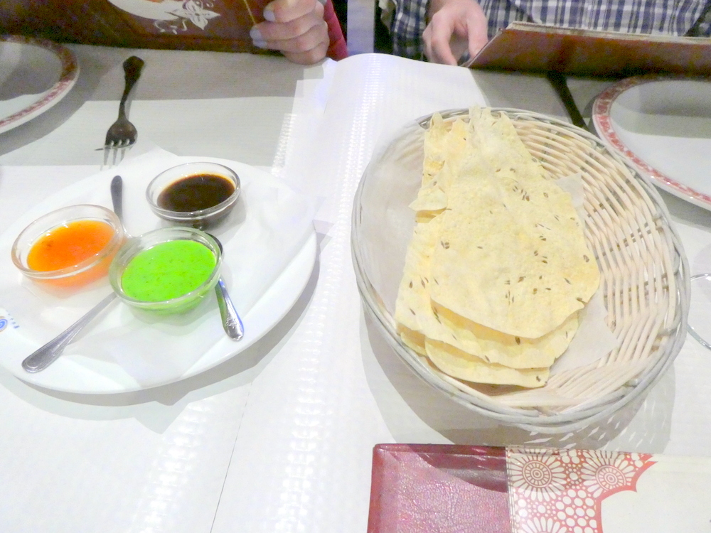 Poppadoms and Dips were brought, I did not partake.