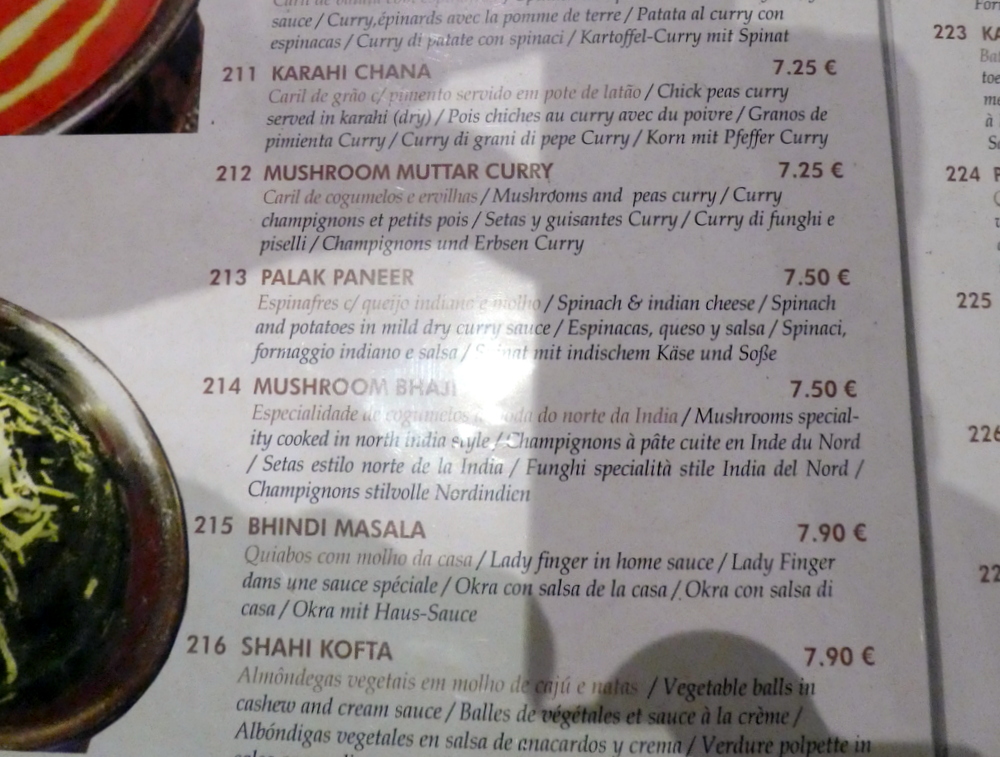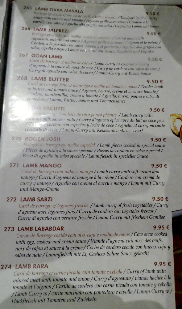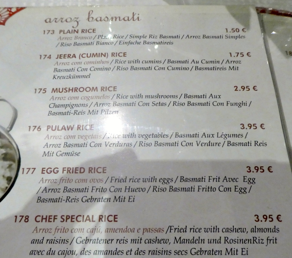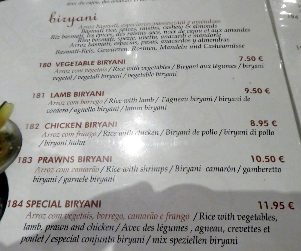 That the Pulaw was a Euro more than the Mushroom Rice puzzled. The Fish Curry was a Euro cheaper than all three Meat Dishes which, I feel, is how it should be. This is not so in the UK.
