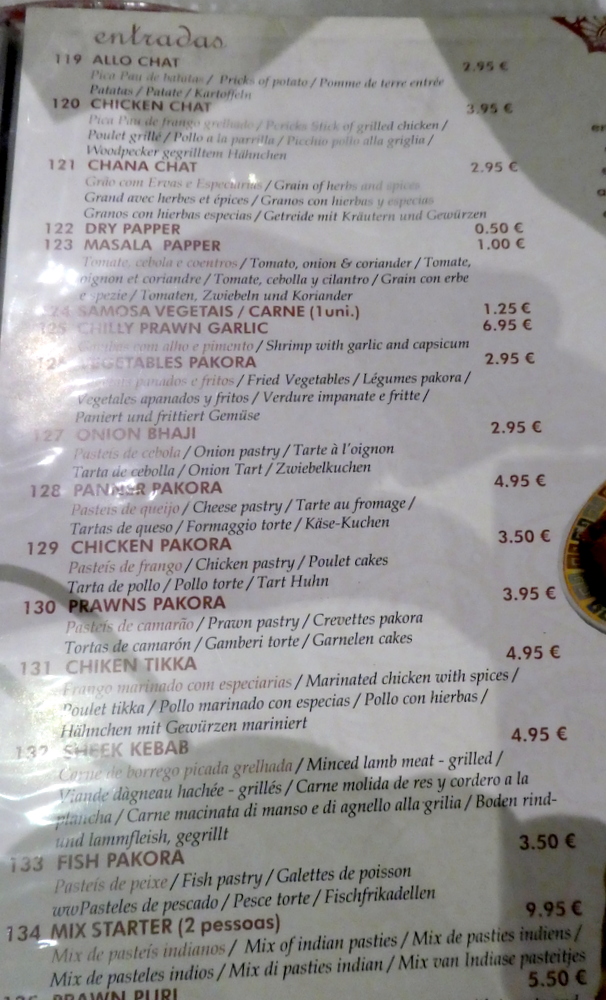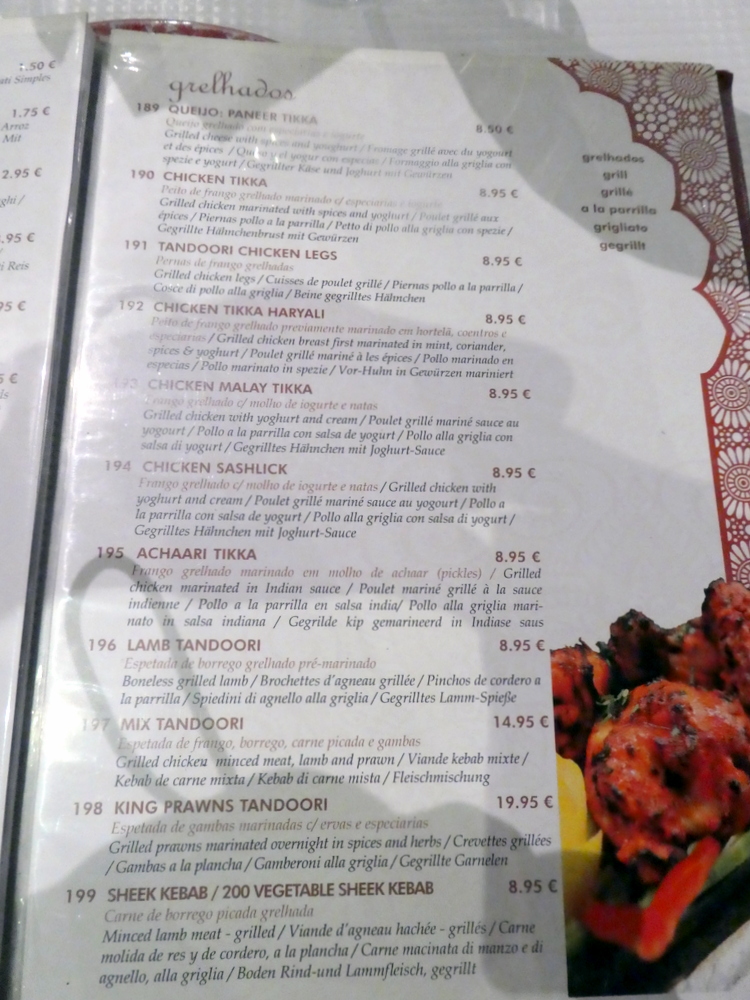 Friday night is – Curry Night. But why not every night? Steve and Louise agreed to meet for Curry this evening in Lisbon, they happened to be in the same city at the same time, strange. Who planned this? Having enjoyed the authenticity of the Curry Houses closer to the – Curry Cafe – end of the spectrum this week, it time to satisfy Marg’s preference for somewhere with – ambience. Hector was going – Mainstream.