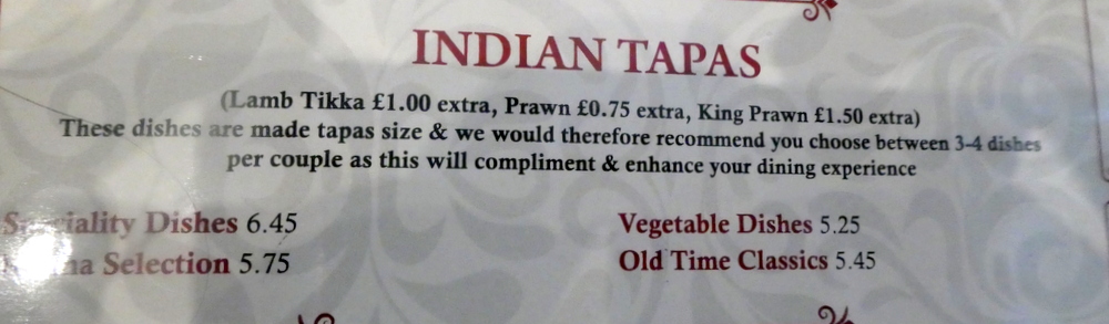 The – Indian Tapas – section allows diners to select Main Courses as Sides; Hector would have his Aloo Gobi (£5.25). As in my recent visits, the excellent Mushroom Rice (£3.25) would accompany.