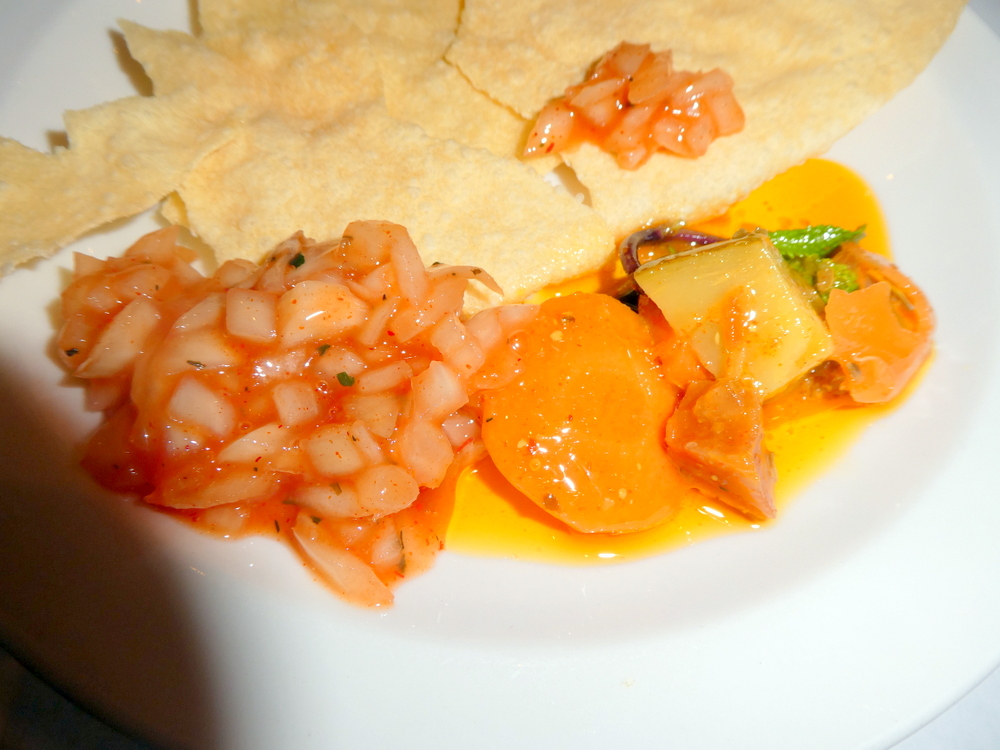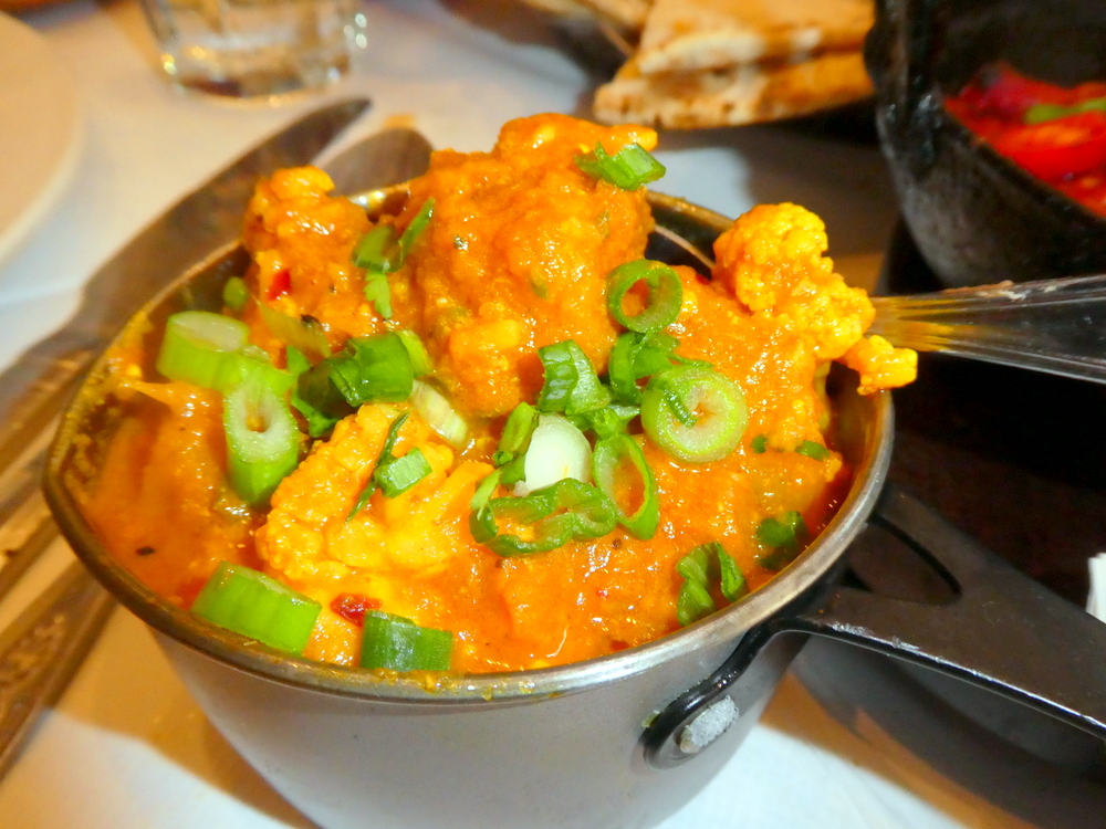 This arrived a few minutes after I had started my Main Course. Tapas indeed, four such portions to make a meal would be quite expensive. The Syboes added a bit of a crunch, there was a sense of Pickle coming across. The texture of both the Potato and Cauliflower was perfect.