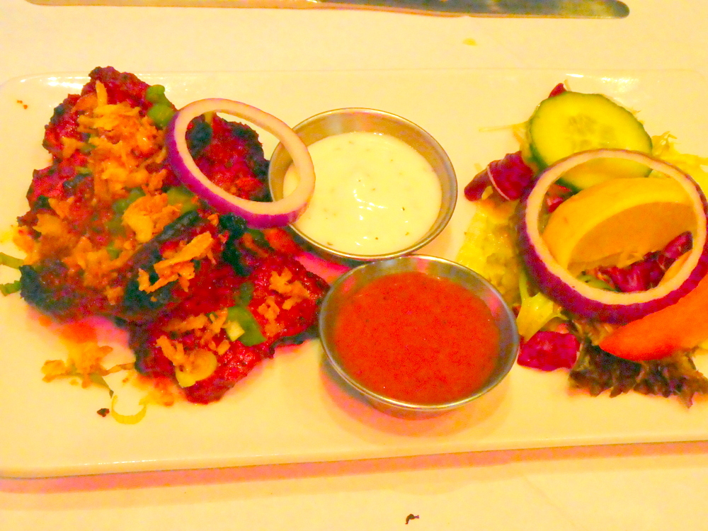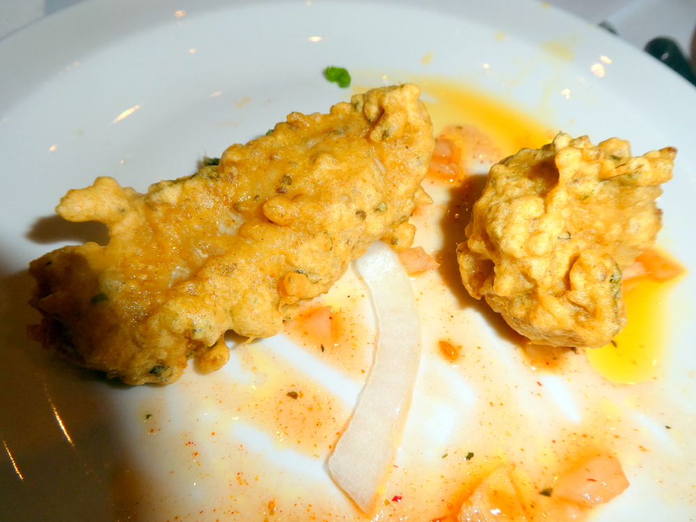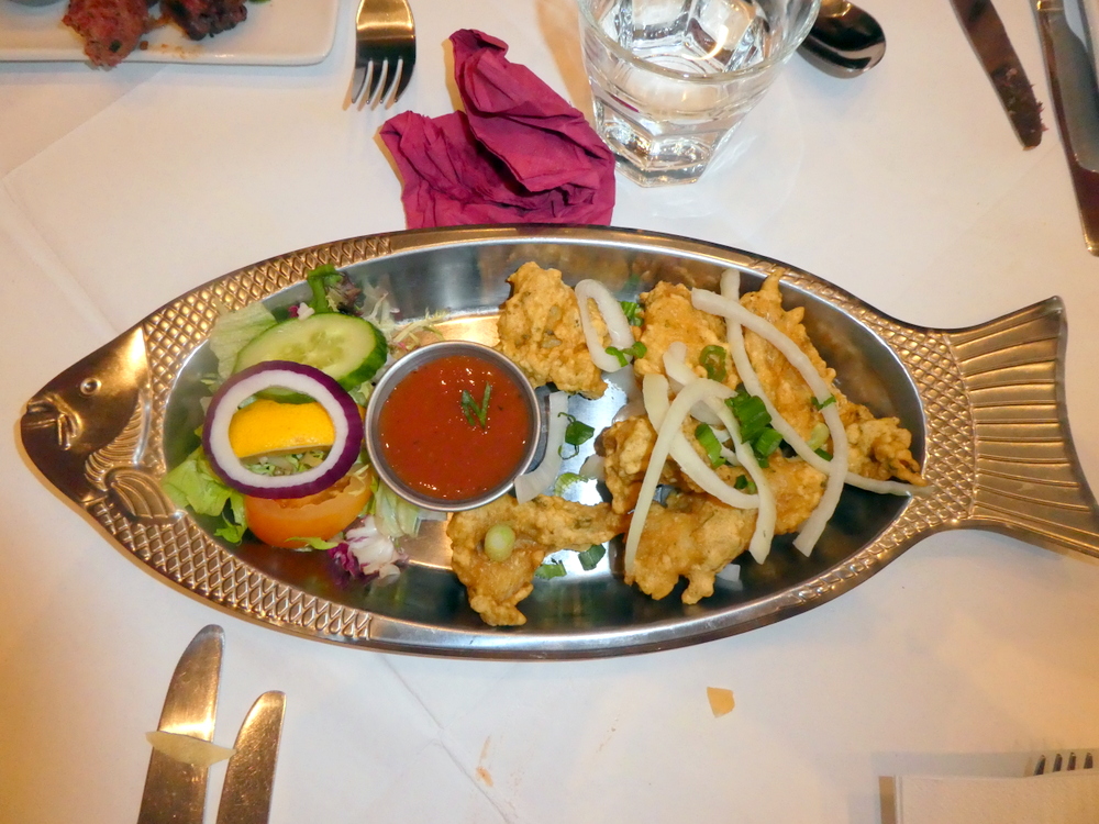 A couple of pieces came my way … hot, fresh and tasty, I believe it was Haddock in a light coloured and decidedly Spicy Batter. The Seasoning was there, excellent Fish Pakora. Mags also found the Fish to be – light and fresh. What a treat.