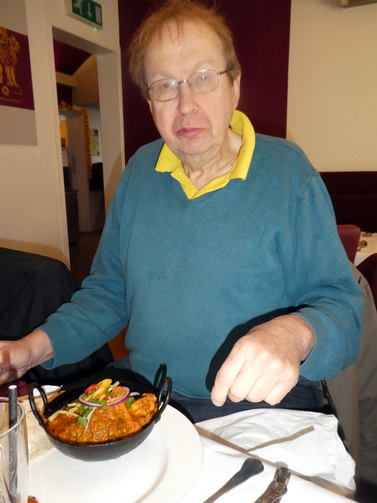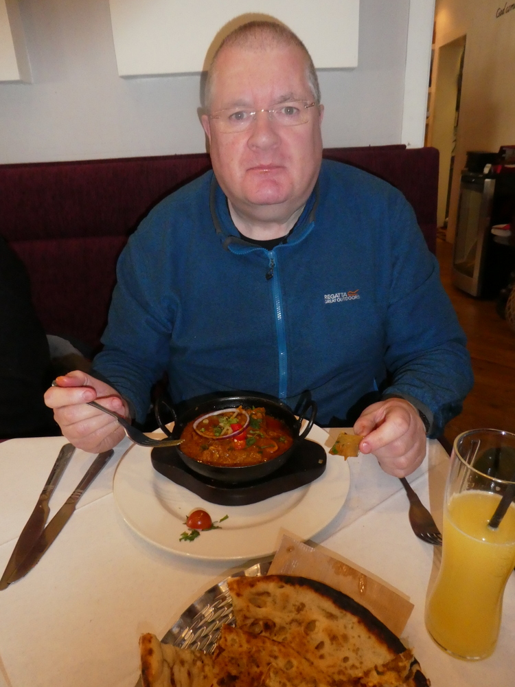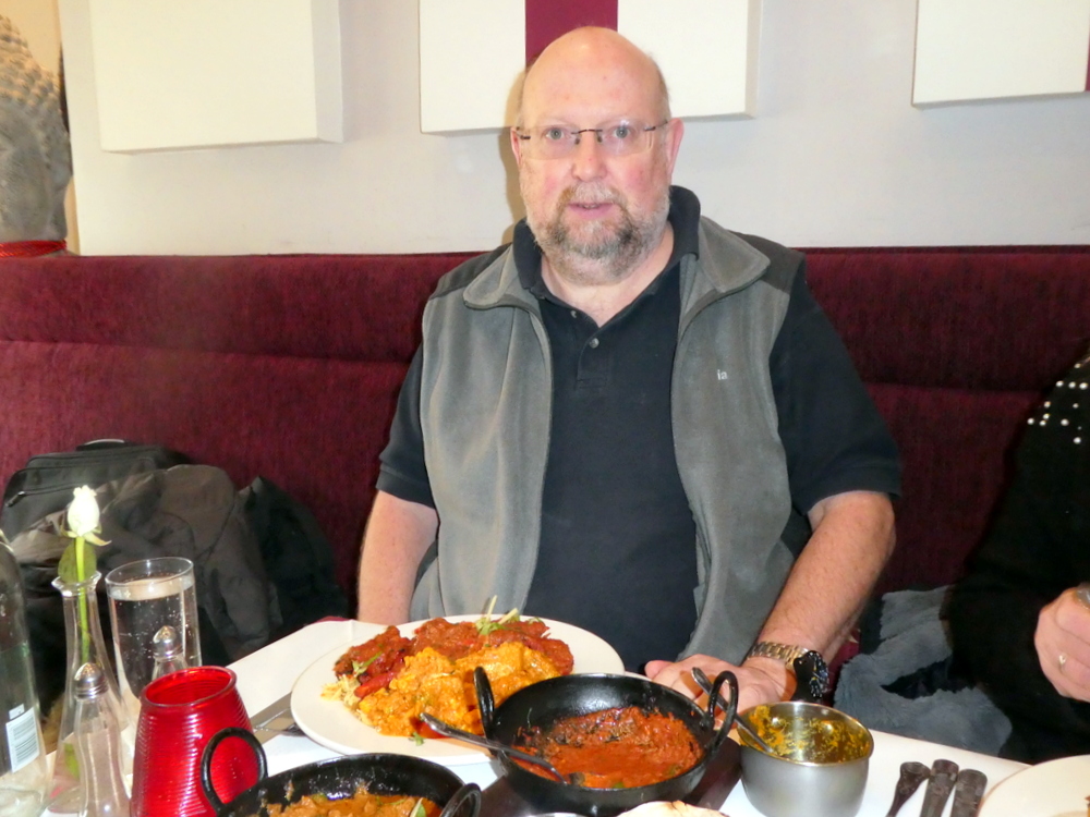This was markedly different in appearance from that served at the end of November. Today’s Masala was redder and thinner. Again the presentation had to be noted, the Onion Ring was a feature of today’s Curry. Howard spoke thus: