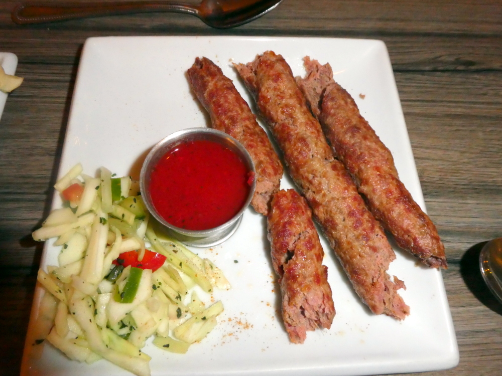 A pair is standard. Three were presented, just as well, these were skimpy in girth. Alan remarked about the lack of Seasoning and that he would never order this again, I concurred. The Spice was there, however, the Kebabs were quite simply – Bland.