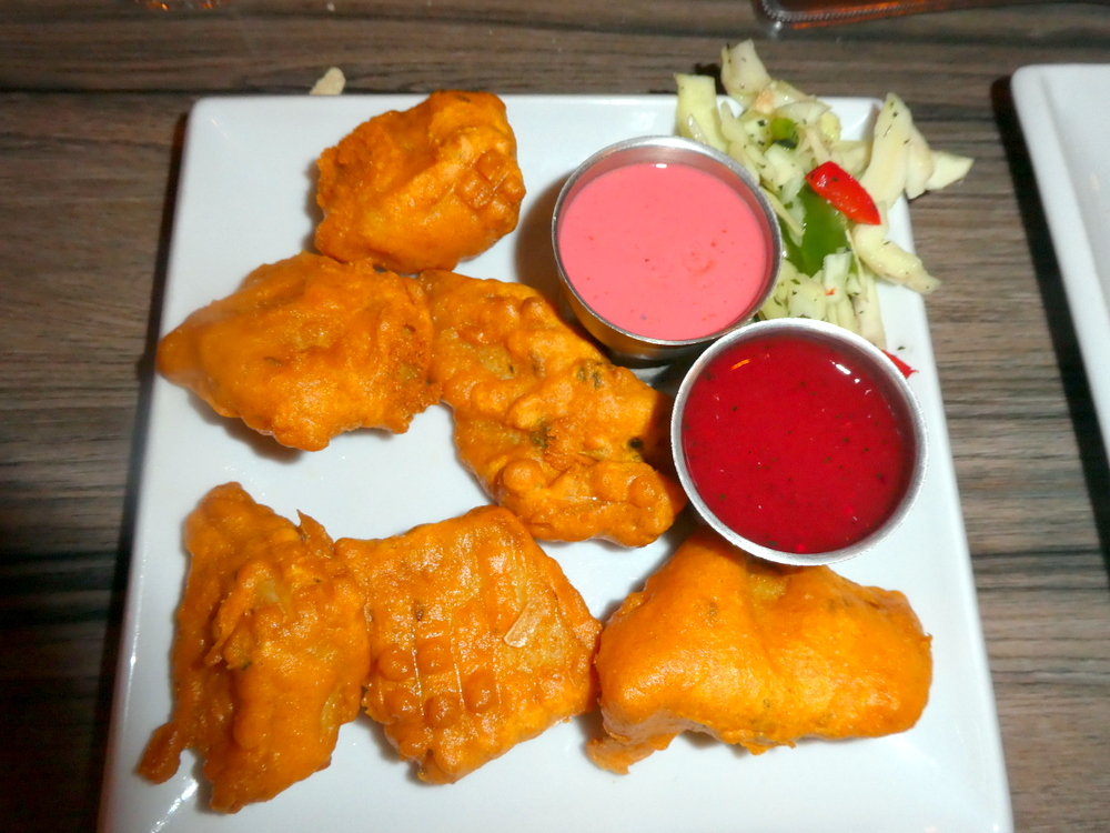 Six decent sized pieces of Battered Fish were accompanied by a Salad garnish, twelve pieces would have been better. Presumably Haddock, the Fish was fresh, the Batter well Spiced and most importantly, the Seasoning was there. Impressive Fish Pakora.
