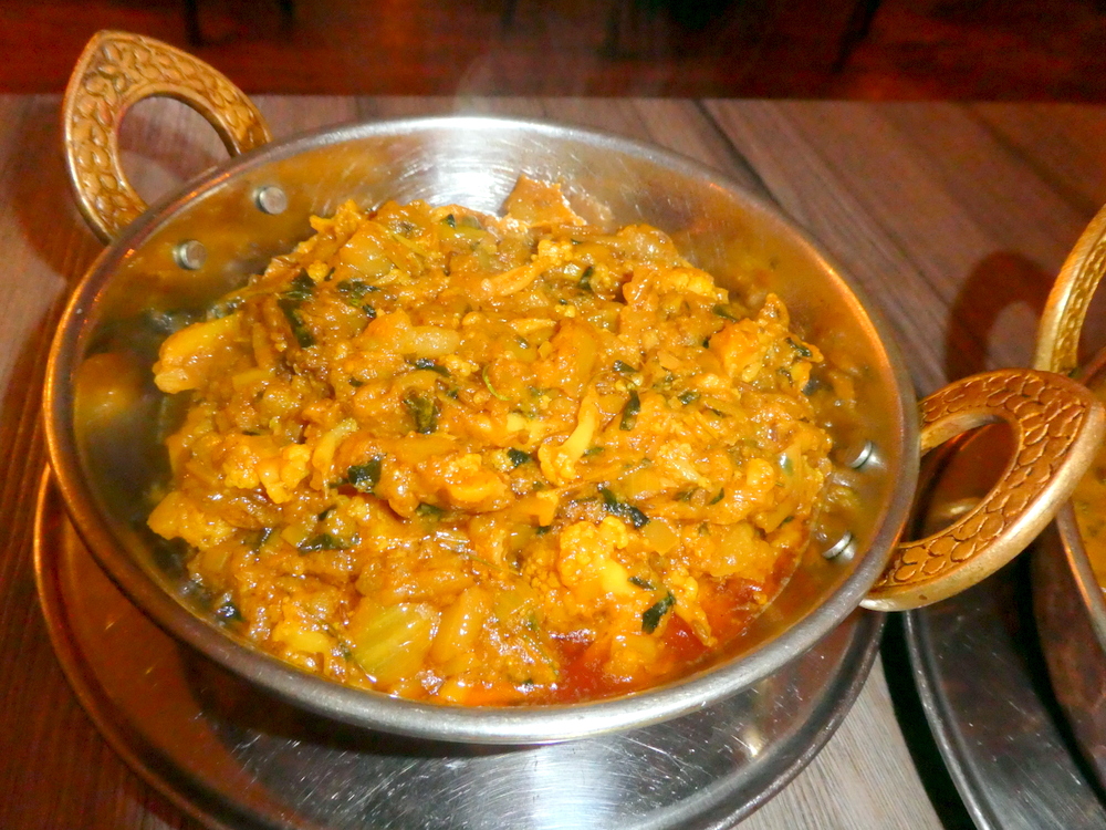 Having enjoyed the best Aloo Gobi in Central Scotland courtesy of Yadgar midweek, the challenge was on. The bulk of the Dish was Cauliflower, the proportion of Potato was distinctly less. Sadly, the Cauliflower was pretty much – Pulp – not the texture one seeks. The Potato, when eventually uncovered, was slightly on the firm side, but fine. The base Masala featured Onions, not the Tomato a la Yadgar. The taste of Cauliflower dominated, I suspect the Potatoes could have been cooked a bit longer to absorb whatever Flavours the Masala was due to provide.