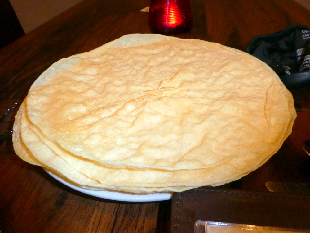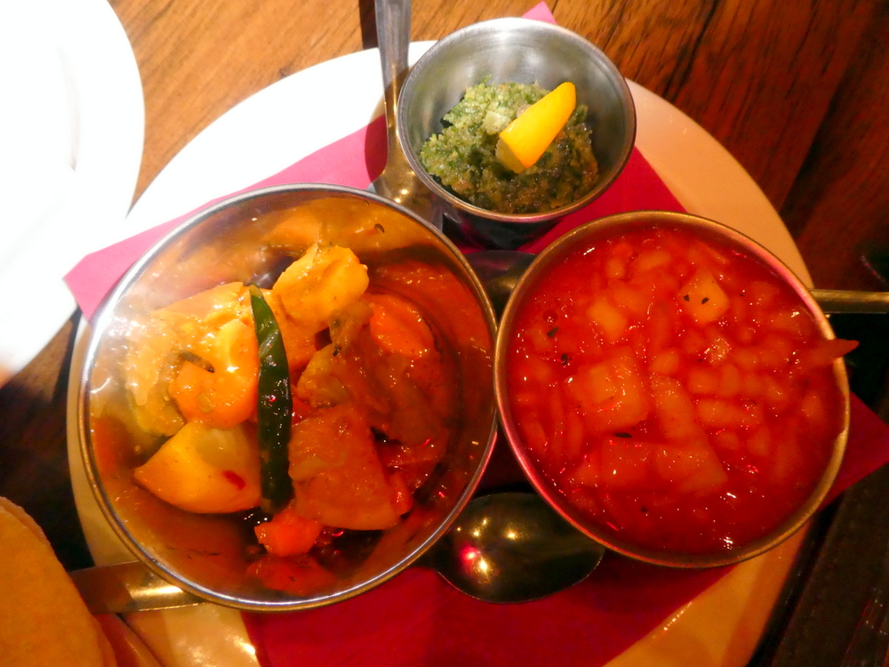 The Chapattis arrived in quarters. This prompted a request to a passing waiter that the Paratha should come whole. When it was brought by our chap, he commented that it hadn’t been cut up. He had to be reminded that that was what was asked for.