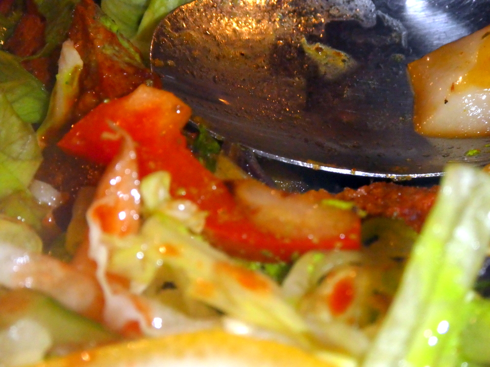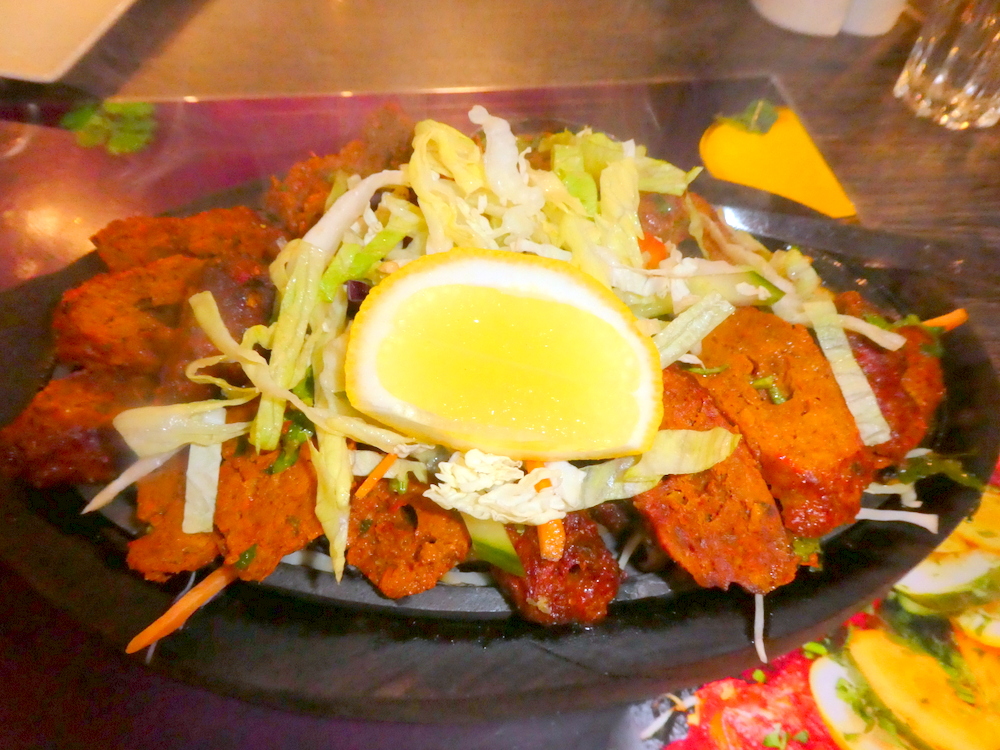 The Lamb Seekh Kebab arrived sizzling on a platter as described. I have never seen so much Seekh Kebab on one plate in my life. I suspect this was for sharing. The Kebabs had been cut up at an angle thus the pieces maintained some form of linearity. The Kebabs were decidedly drier than those served in the UK, the ground Meat may well have been different also. The Spice was there, the Flavour lacked complexity. I watched as the Salad Garnish cooked on the still hot platter. Slices of both Red and Green Capsicum were in the Salad. Why do people not listen?