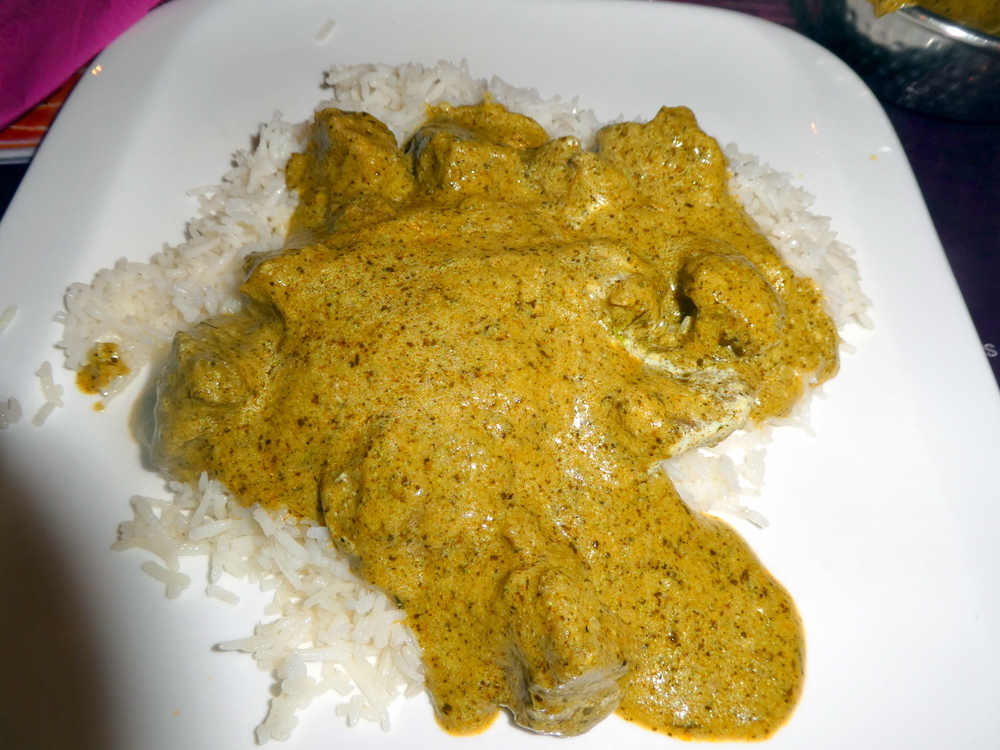 The Creaminess I can handle, not my favourite, but there was due to be Methi in there, all could be well, still. The dark specks were surely Black Pepper, but then where was the Methi, had it been blended in? A Green, Creamy Curry? Whatever, as it sat on the plate it simply looked awful. This was – Soup, exactly what I never want. I occasionally use ground Cashew Nuts to thicken a Masala. What was the base for this – Masala? There was no sign of Onion or Tomato. Surely they had not just added cream to ground Cashew Nuts? That is not a Masala, this was not – Curry.