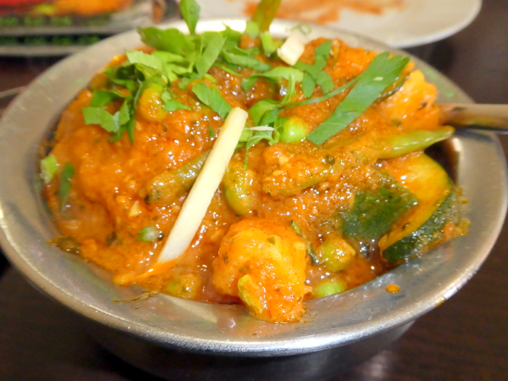 A Poppadom and three Dips were presented. A somewhat watery Chilli Sauce and Raita were poured over the Poppadom. Bring on the blast of Cumin Seeds! I shall miss these, but then I have to get back to Blighty to be able to miss them.
