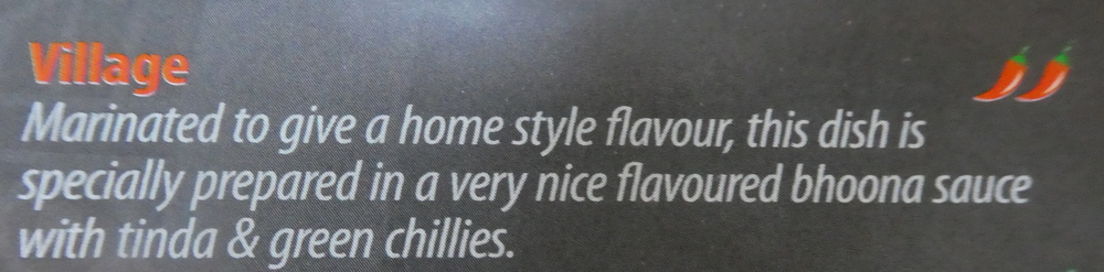 Until I spotted the pieces of Tinda/Khadu protruding from the Masala, I was not certain as to which Curry was which. Again the colour of the  Masala was dubious.  I counted nine very large pieces of Lamb and conclude a whole Tinda had also been added in pieces. Is the – Village – the only Curry on the Menu which manages to include an – Interesting Vegetable – whilst simultaneously avoiding the dreaded green mush? Tomato seeds very prominent in the blended Masala. The Thickness of the Masala was again far from Shorva.