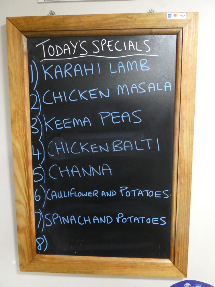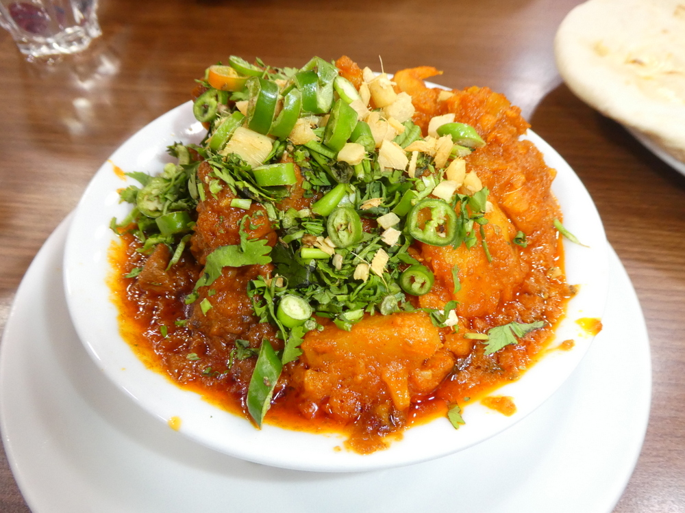 Marg and Hector entered Kabana (22 Back Turner St., Northern Quarter, Manchester M4 1LQ England) today at 13.45. Marg had already eaten, something that was not Curry. For Hector, a repeat of yesterday’s so satisfying Karahi Lamb was the easy option, however, the Cauliflower and Potatoes served at Kabana has also impressed previously. Why not have both?