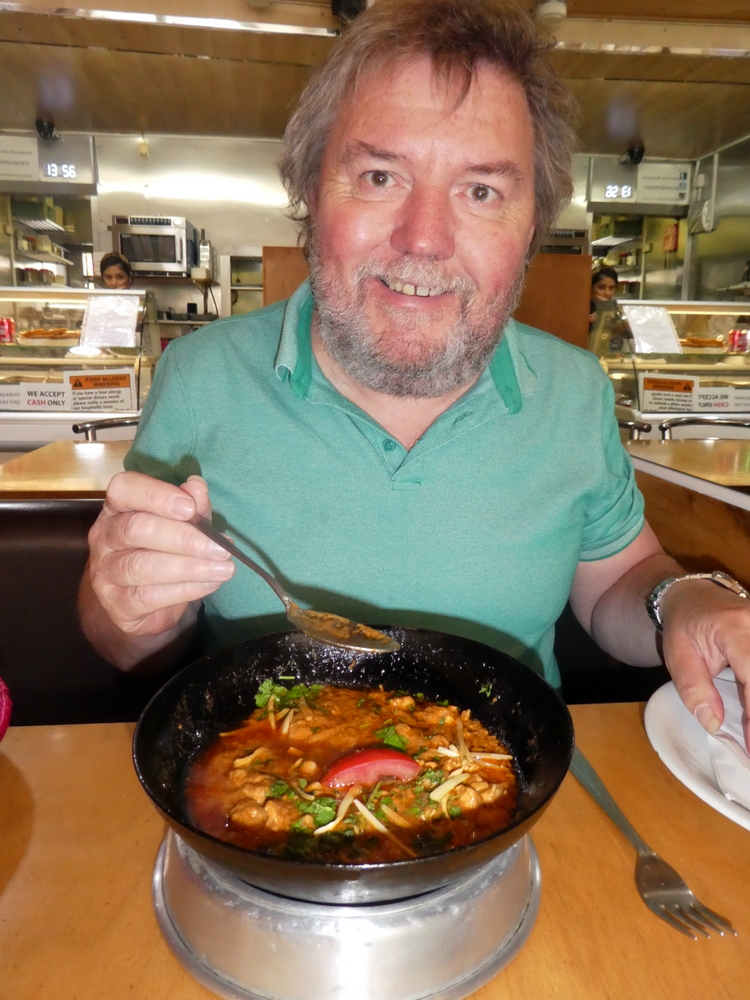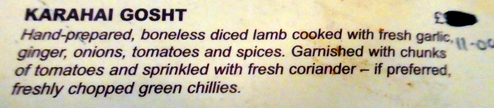 I spotted Lahore One London (218 Commercial Rd., Shadwell, London E1 2JT, England) last year when I had a Whitechapel Curry at the impressive Lahore Kebab House. Lahore One looked like Hector’s sort of venue, the classic Curry Cafe. Sources showed photos of a Karahi Gosht which was worthy of investigation.