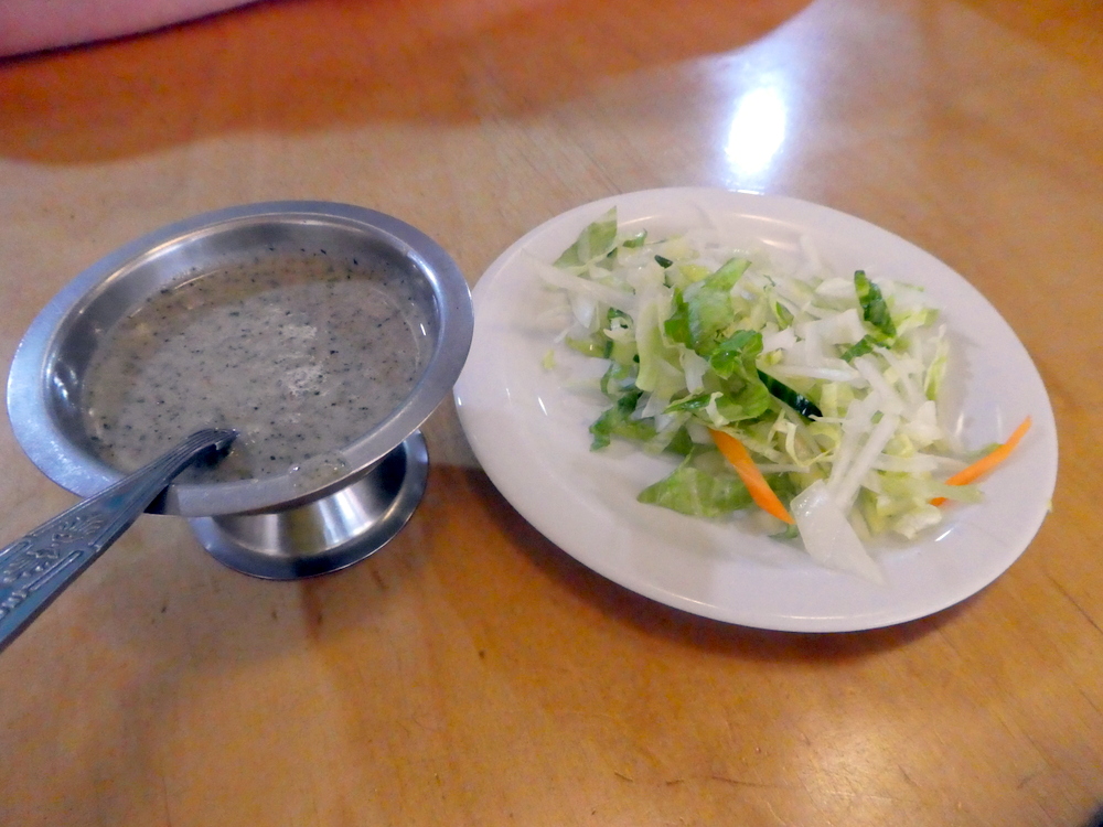 A Modest Salad and a Raita were brought to the table, the tap water was well received, it was hot out there. The Salad remained untouched, Clive sampled the Raita. Lime Pickle – was Clive’s take on the flavour.