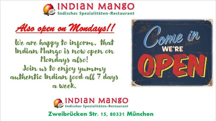 Indian Mango (München) put out a message this evening to say that they are open on Mondays as of today. Anyone fancy a trip to München?