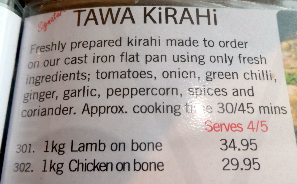 The – new menu – was brought, my second encounter with this frustrating publication. Tonight, one could afford the highly inflated price for the Lamb Tawa Kirahi (£34.99), but Hector’s mission this evening was to experience a classic Village Curry. My favourite Dishes keep disappearing from the Menu, Achari Gosht (£9.95) has survived the cull. Special Rice (£3.25) would accompany despite – Mushroom and Peas – being a far cry from the outstanding Vegetable Rice of ten years ago. Marg decided to revisit the Curry which proved to be particularly pleasing last time – Lamb Lahori Karahi (£10.95) along with a Tawa Chapatti (£1.10).