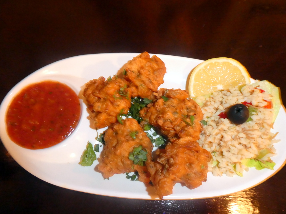 Having had the Butter Chicken (£10.95) at Renfrew last week, Marg was up for something different. Marg too found the Menu to be limited and so announced two Starters and no Main Course as her plan for the evening. Marg reckoned that she has not had Vegetable Pakora for some time, I assured her that it can be made at home, anytime. Veg Pakora (£5.50) it would be and Lamb Chops.