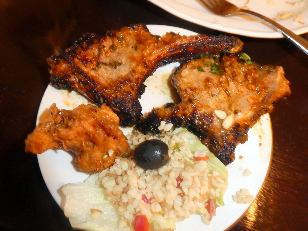 The garnish is worth a comment. Marg took the Mint Sauce, not an accompaniment Hector would ever have with Lamb Chops, then wondered if it was Mint. Did it have Spinach? The Rice baffled, certainly not Basmati, maybe not even Rice, Barley was mooted. More Olives please, one is certainly never enough. Have I mentioned Lamb Chops at Akbar’s? … but then they sneak in Capsicum with the garnish.