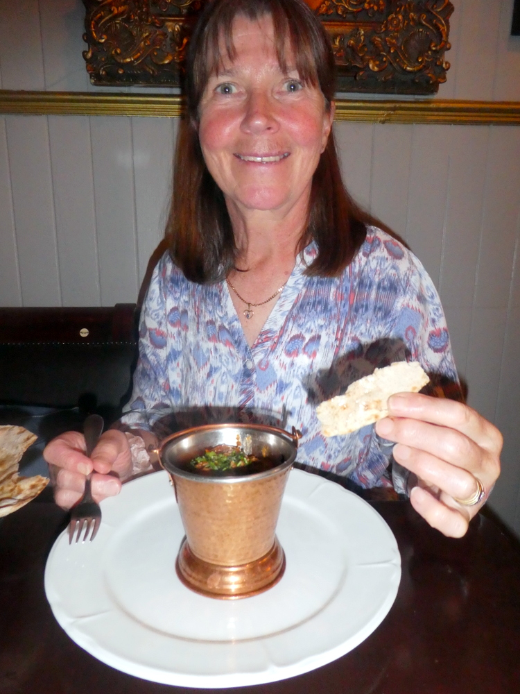 The Rara Gosht was served in a familiar – bucket – used for Mains, this was the – small. OK, it wasn’t filled to the brim and the geometry was such that nearly the same quantity again could have been accommodated. This proved to be the exact quantity which Marg can eat after a Starter, so the plan worked.