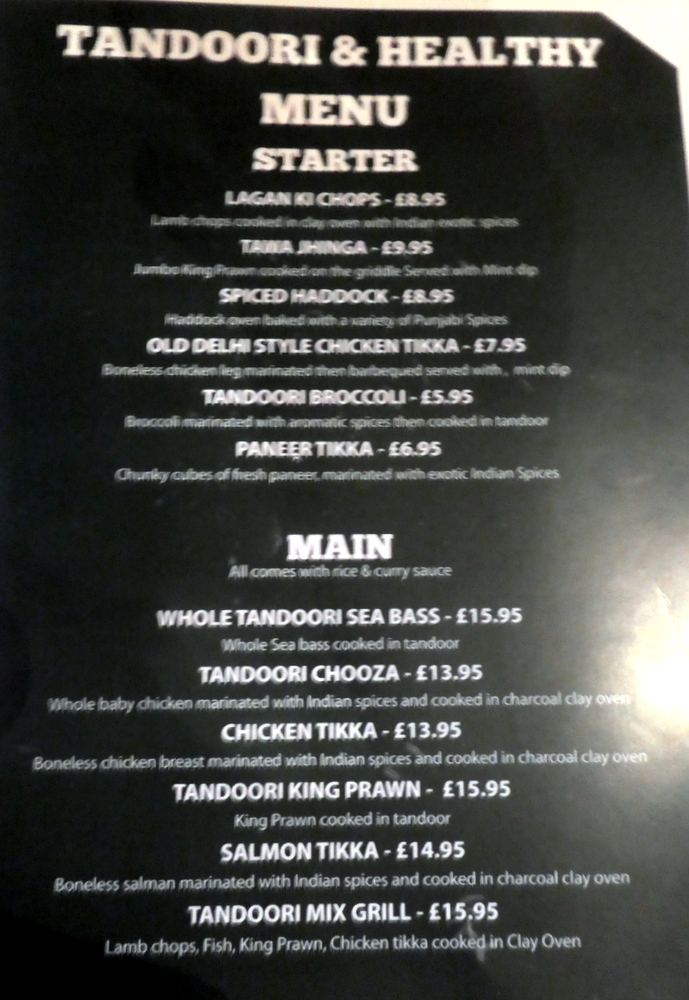 Two menus were brought, the – Tandoori & Healthy Menu – raised a smile. What? No gallons of Oil? The Main Menu has a section labelled – Curries – there’s a word the reader will struggle to otherwise find in Curry-Heute. Only the two Lamb Dishes: Lamb Kadhai (£11.95) and Rara Gosht (£11.95), what if they both featured the evil Capsicum, I would have to ask.