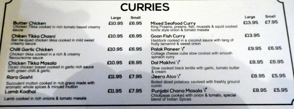 Readers in Bradford should skip this paragraph to avoid apoplexy, those in Aberdoom may miss the point. A Tandoori Roti (£2.50) for Marg and a Naan (£2.95) would complete the food order. £2.50, for one Roti…