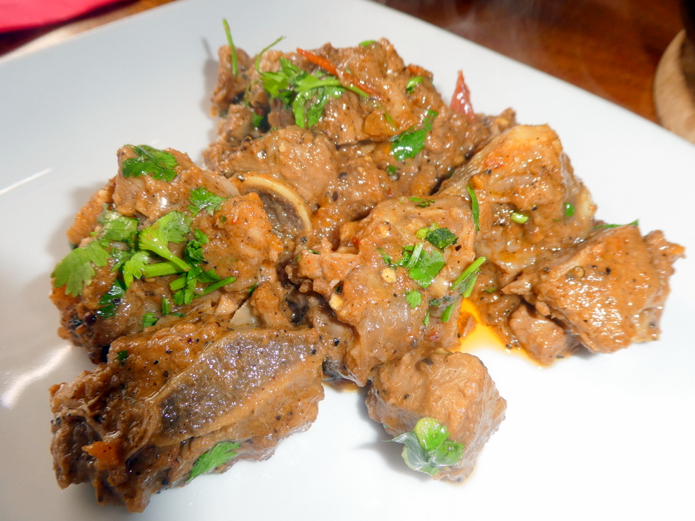 The Seasoning was right up there, stretching the limit, Salt & Pepper indeed. Getting this right is crucial as is cooking the Meat to the point of being Tender-Soft and avoiding – pulp. The Oil content was impressive by its absence, very little residue. The volume proved to be ideal, with bones present, two can easily manage the kilo without the feeling of having over-indulged. Also, one is not going to leave wishing the portion had been more.