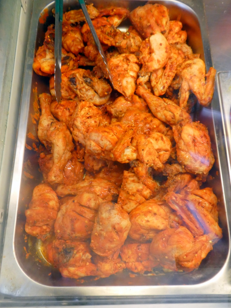 At the counter, I took my customary photos of the prepared Dishes. Aqeel is awaiting delivery of a new fridge, he can then extend his display, and this will include – Fish.