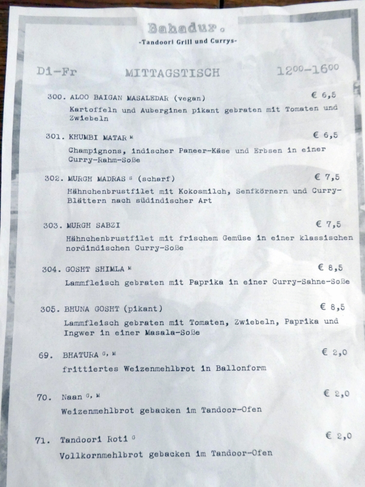 Open from noon, Bahadur was potentially an ideal place to start the day. Once again Clive would accompany Hector on the U Bahn to Blissestraße, from where it was a short walk.