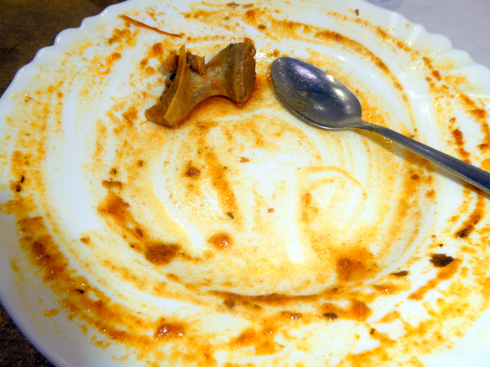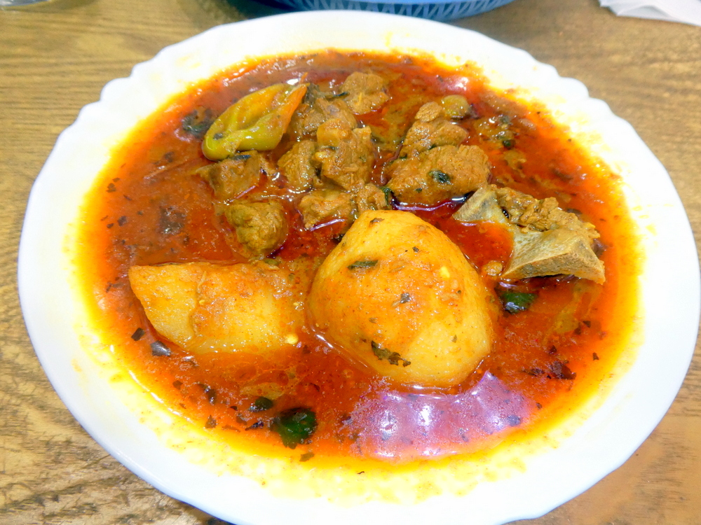 Served piping hot, the traditional Shorva looked most appealing. Full of leaves and Stems, this was another classic. Eight decent sized pieces of Meat and one large bone were accompanied by a Potato and a bit. The Potatoes were cut into around ten smaller pieces, there was plenty here.