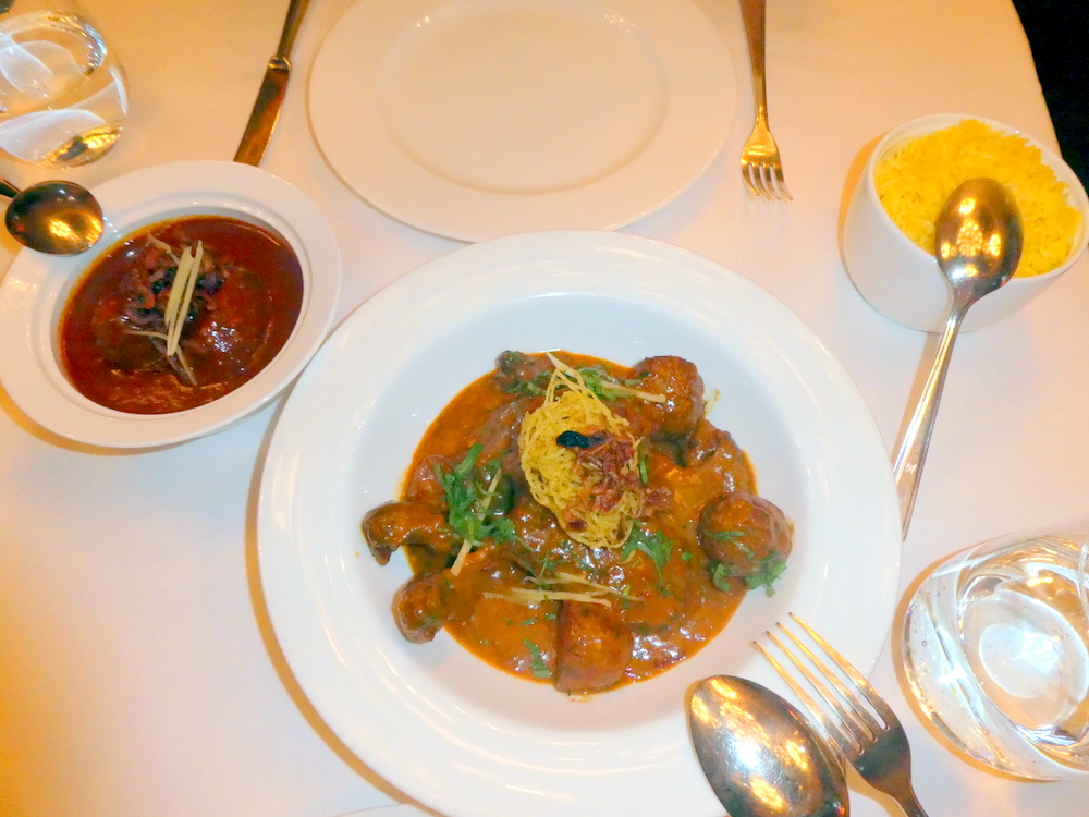 The Main Courses were assembled on the table. The Saffron Pulao was enough to share. The Naan was the last to arrive. Thin, crispy and served in quarters, what a pitiful Naan. Was it the Bread Chef’s night off? This was a truly sad effort, as much biscuit as bread, this Naan did nothing for Hector who could probably produce something better himself. Ironically, Marg loved it because it was closer to being a Roti.