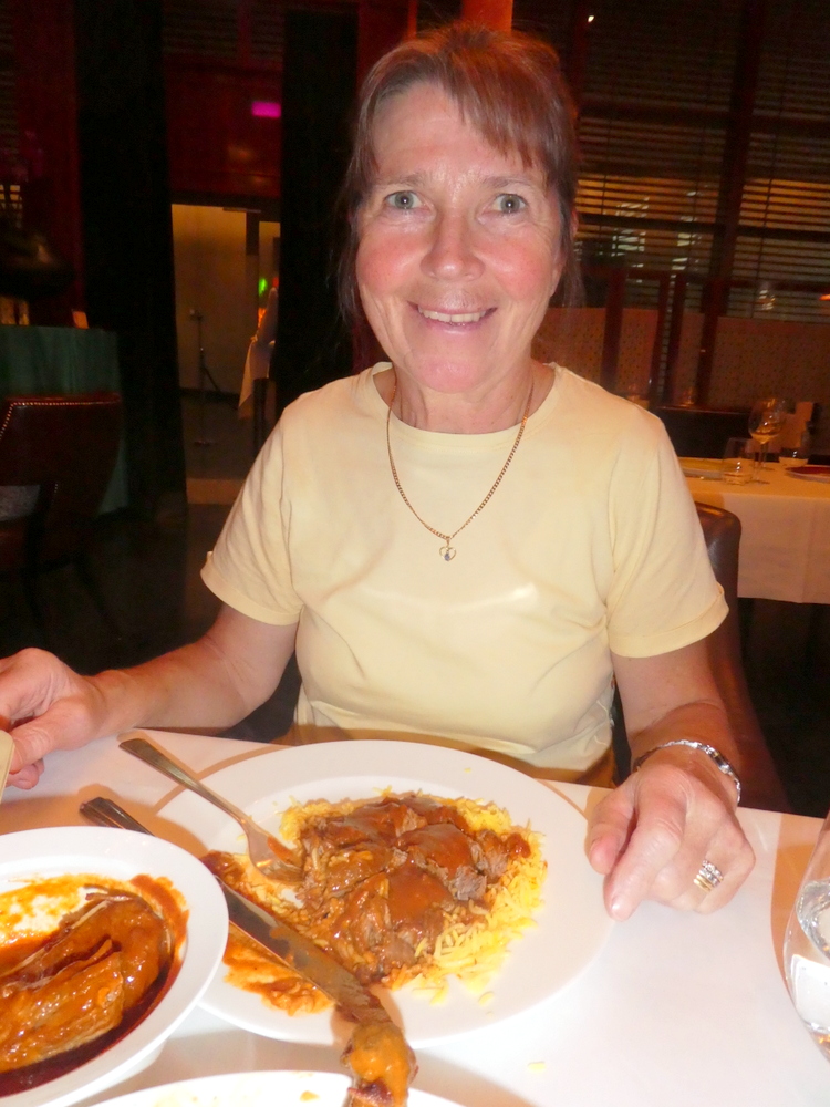 This was a Traditional Indian Curry, significantly different from what we would order at home where Soupy Curry is eschewed. Marg cut the Meat into smaller pieces, she had quite a plateful, and appeared to enjoy every moment:
