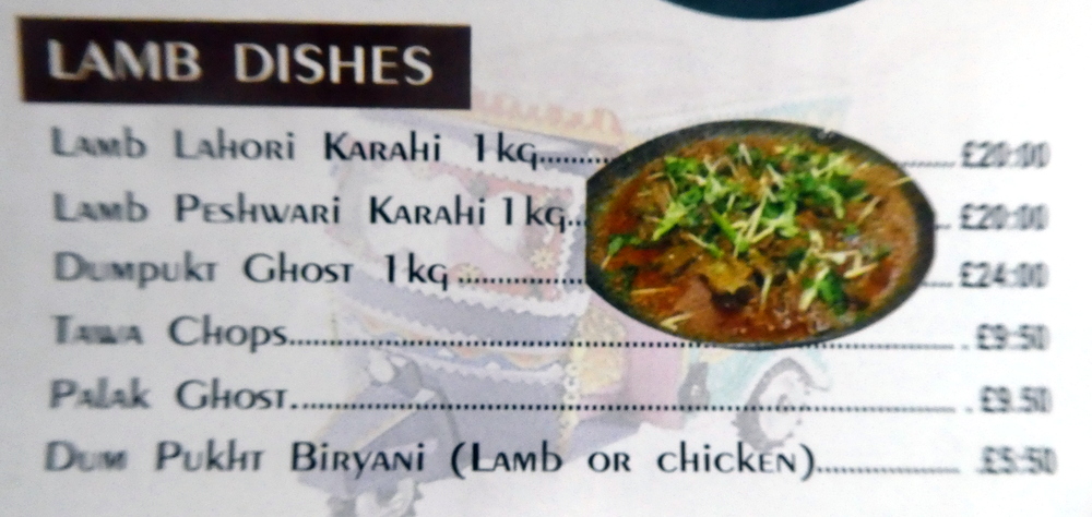 Marg has declared the Karahi as served at DumPukht to be her favourite, even though it comes with bones. The Lamb Lahori Karahi 1kg (£20.00) is the standard order. Previously, I believe Marg likes the Lamb Peshwari Karahi 1kg (£20.00) even more. Today we chose the latter with a Rogni Nan (£1.50) and a Roti (£1.00) as accompaniments.