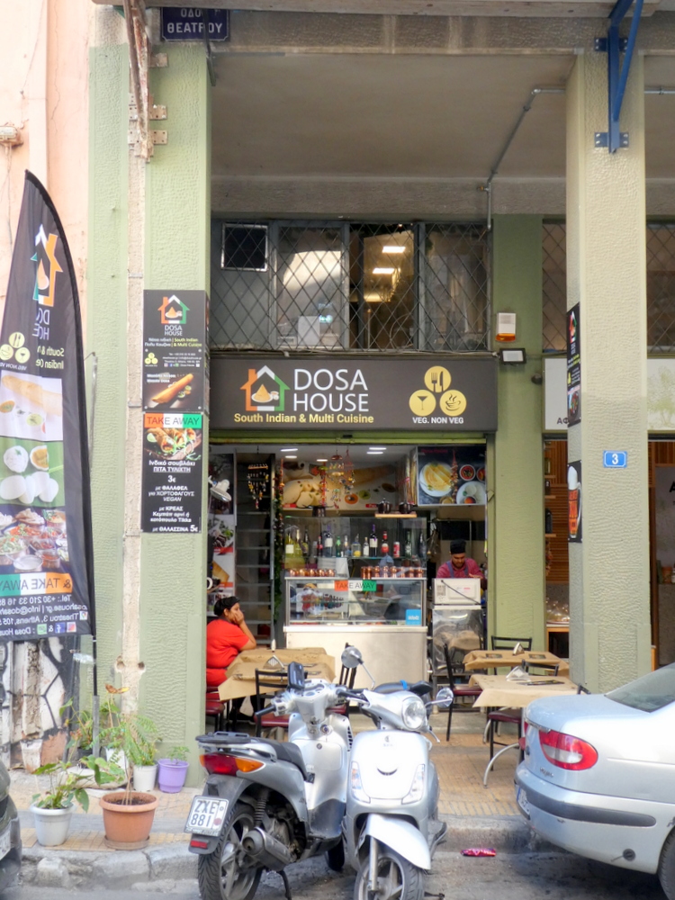 Walking up towards the Central Municipal Athens Market aka Meat & Fish Markets is the South Indian – Dosa House (Theatrou 3 Near, Pl. Theatrou, Athina 105 52).