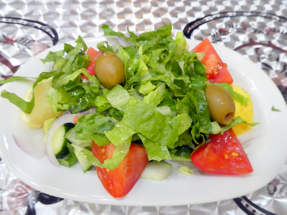 Marg squeezed the Lemon wedges over the very decent Salad then took but a Soupçon of the Raita. Sadly, the majority of the copious Raita on the table went untouched. Marg took care of one Salad, Hector was trying to sustain what appetite there was.