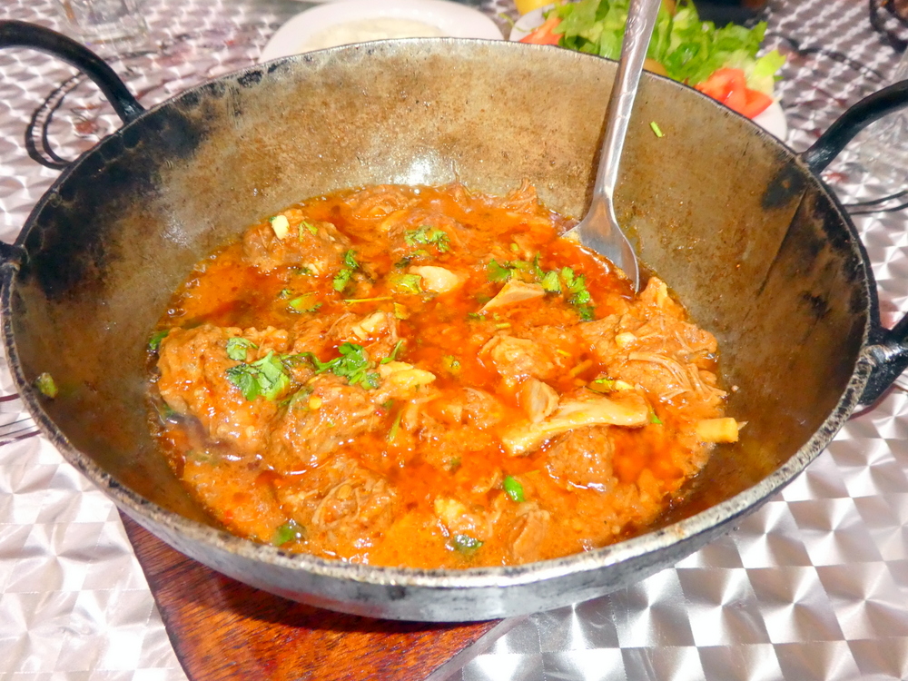 The appearance was close to the Karahi Gosht, the biggest difference was the Meat being served – boneless. Clive had this to contend with plus a bed of Rice and most of the Keema Naan, quite a challenge. Somehow he ate all that was on his plate then still had enough appetite to eat more Naan whilst scooping up the surplus Masala left in the karahi.