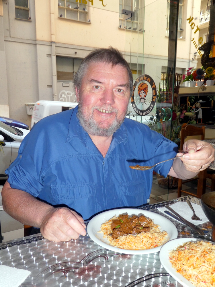 A relatively late night Greek feast meant that Hector’s appetite was not ready for Curry at noon, but if a second meal was to be had, it had to be this early. Hector was accompanied to Pak Taka Tak Restaurant (Pl. Theatrou 24, Athina 105 52) by Marg and Lord Clive and Lady Maggie from Crawley, our English friends were débutantes at this remarkable Athena Curry Cafe.