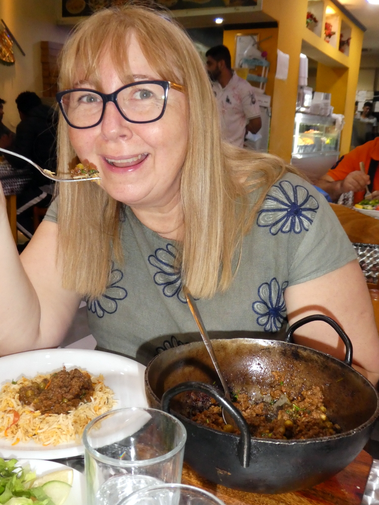 Having eaten almost an entire Naan, plus pieces of the Keema Naan, there was no way Hector was going to finish all that was in the karahi. There was a sensible time to stop, not too much waste, and only one splash on the yellow polo shirt.