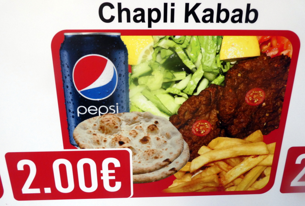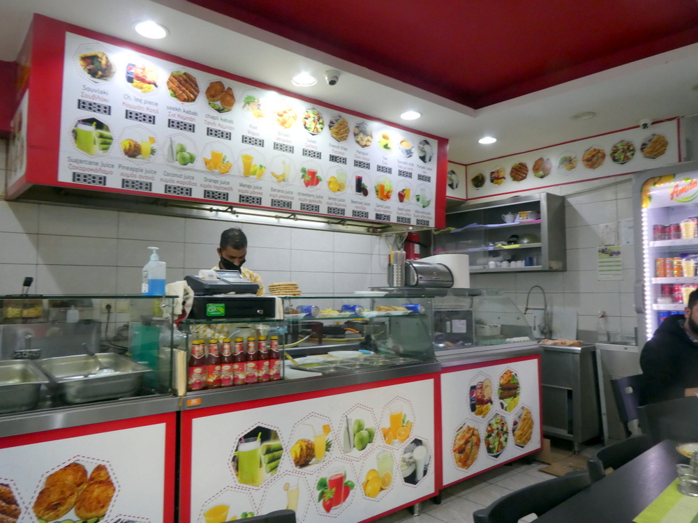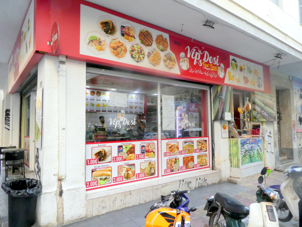 Having stuck my head in the door at Vip’s Desi Fast Food and Biryani (Menandrou 11, Athina 105 52) last Tuesday, I had established the availability of Chapli Kabab (€2.00). Hector and Marg picked up Clive outside Beer Time and walked the few blocks to the north of Psyri. Arriving at Vip’s Desi around 16.00, all three inside tables were seemingly occupied. One table had food on it but no diner, staff dinner? This was removed, we had the table nearest the door. Vip’s Desi do not serve Curry, the Biryani, however, appeared substantial. Having been introduced to Chapli Kebab during Lockdown, Marg was keen to have this also. Clive mentioned – Donner. It’s not that sort of place – I had to tell him. Seekh Kebab was also posted on the display above the counter, not available today. Three Chapli Kabab it would be.