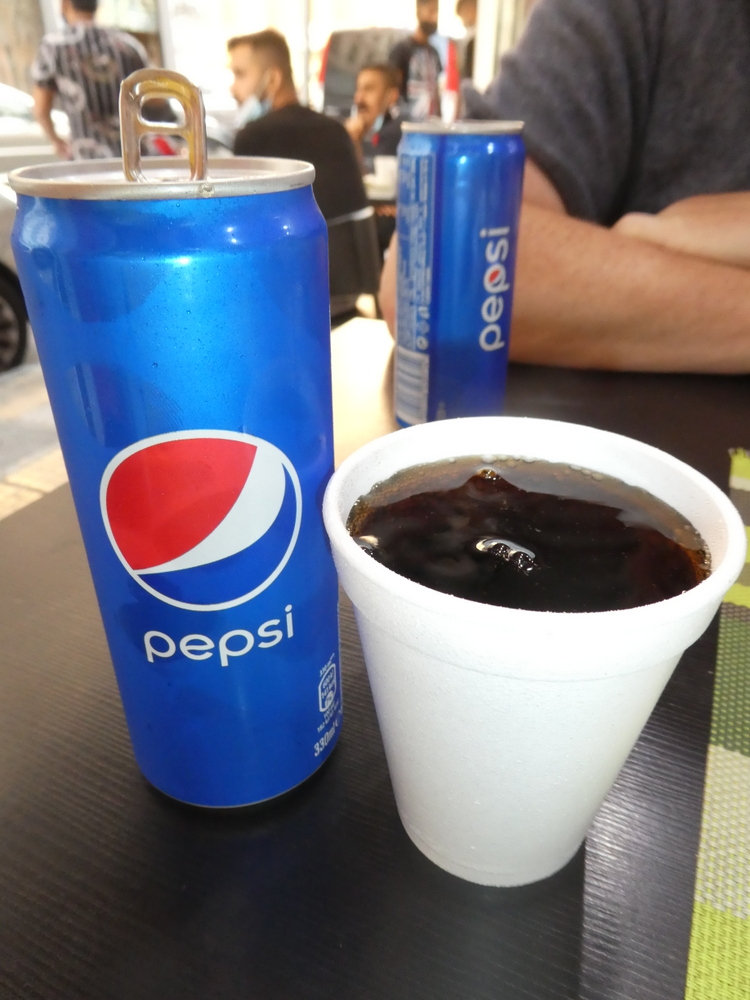 Only Pepsi or a small bottle still water was available in – the deal. The Pepsi was accepted, eventually we secured polystyrene cups.