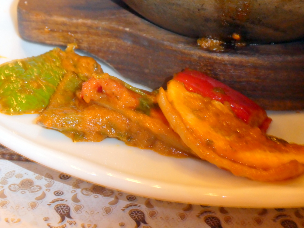 We took the table for two at the far end. The waitress brought the Menu, nothing has changed since 2014, same prices, same choice of two Lamb Dishes, both featuring – Capsicum. I raised the matter of the Dreaded Green Mush with the waitress.